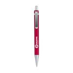 Blue ink ballpoint pen with translucent coloured barrel and matte metal clip.
